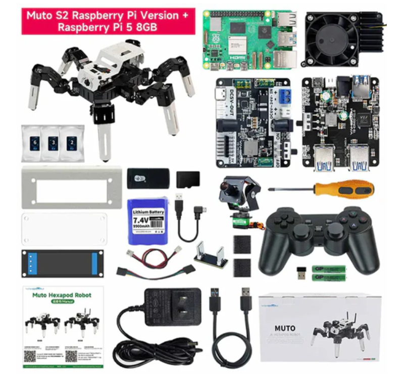 18DOF Muto S2 육족 로봇 - 라즈베리파이 버전(Raspberry Pi 5 8GB 보드 포함)