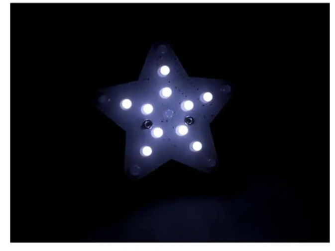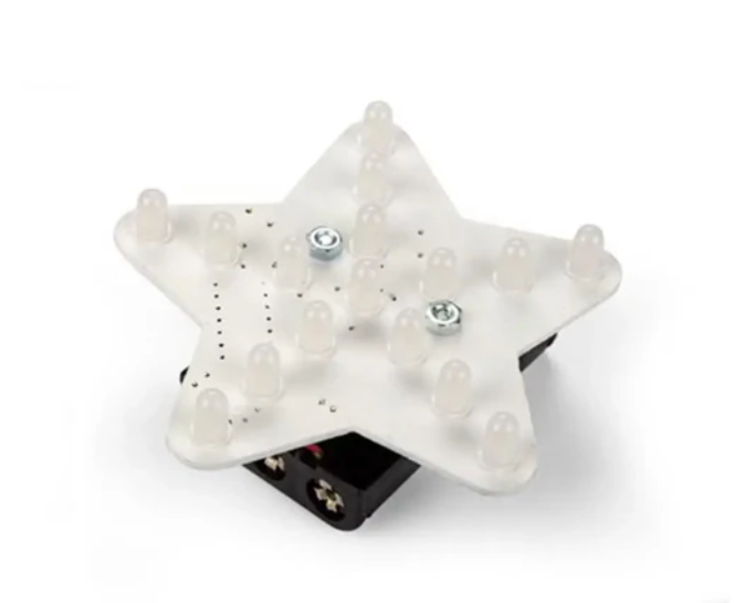White Starlight 납땜 키트는 14가지의 다양한 효과를 제공합니다: 부드러운 빛, 강한 빛, 강한 내부 및 부드러운 외부, 강한 외부 및 부드러운 내부, 느린 페이드, 빠른 페이드, 느린 채우기, 내부에서 외부로 채우기, 외부에서 내부로 채우기, 깜박이는 LED #1, 시계 반대 방향, 시계 방향, 나선형으로 안으로 들어가고 나오기, 깜박이는 LED #2.