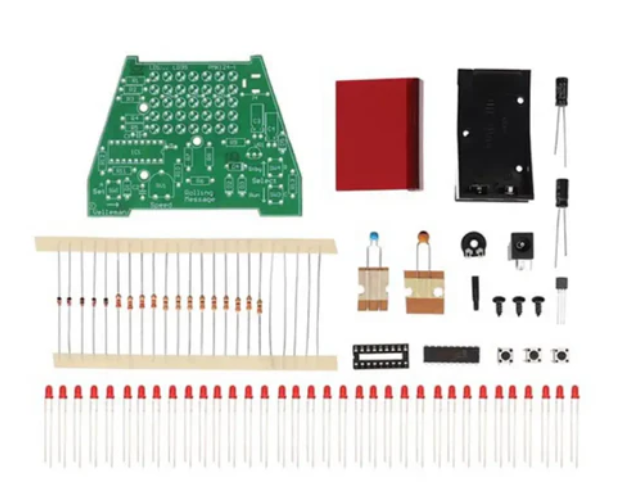 스크롤링 메시지 납땜 키트는 35개의 LED가 장착된 그래픽 디스플레이 모듈입니다. 디스플레이에는 최대 16자가 표시되고 스크롤 속도는 조절 가능합니다.
