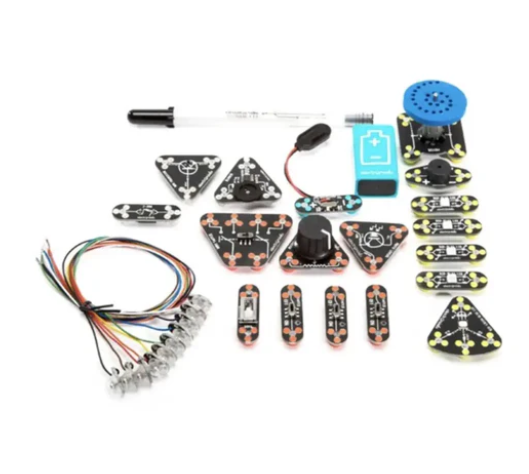 • Circuit Scribe Ultra Kit에는 불이 들어오고, 소리가 나거나, 움직이는 역동적이고 재미있는 종이 회로를 만드는 데 필요한 모든 것이 포함되어 있습니다. 가이드 워크북을 통해 전도도, 터치 감지 회로, 타이밍 회로 등의 개념을 탐구해 보세요.