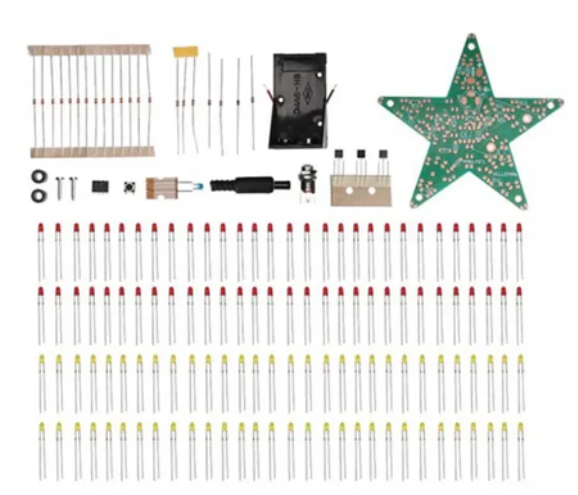 60 x LED 멀티 이펙트 스타 솔더링 키트에는 LED 60개가 들어 있습니다. 마이크로프로세서로 제어되며 24가지의 다양한 애니메이션을 제공합니다. 빨간색 LED 외에도 노란색 LED가 포함되어 색상 조합을 구현합니다.