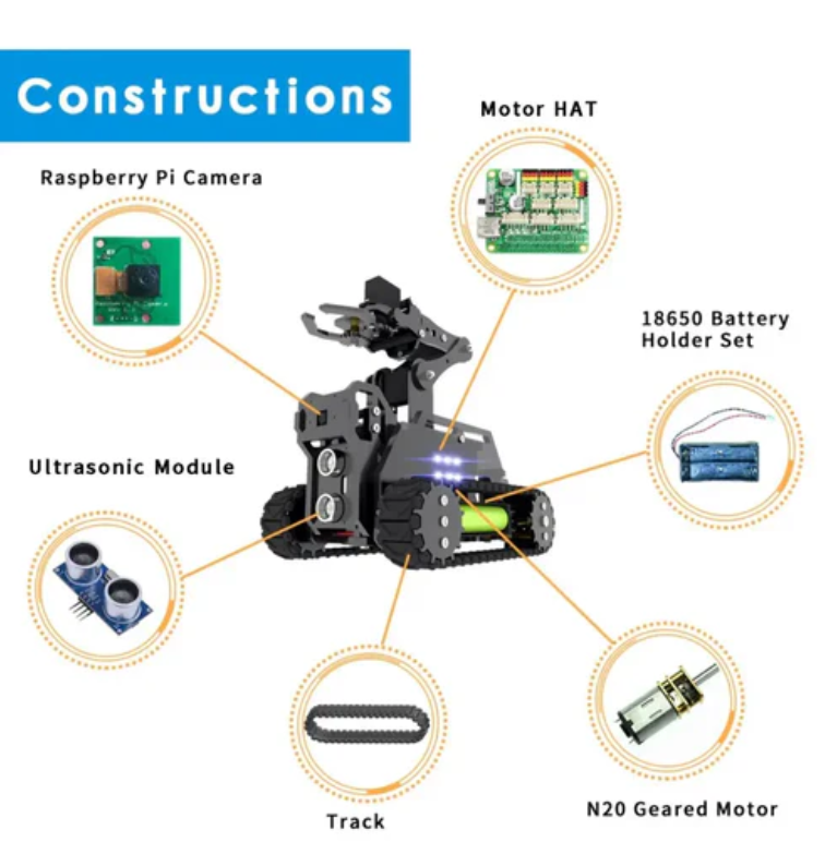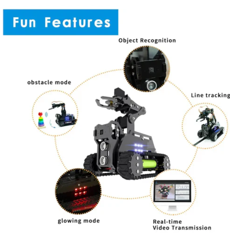 Raspberry Pi용 Adeept RaspTank WiFi 지능형 로봇 탱크 키트는 Raspberry Pi 기반의 무한궤도 이동 로봇 플랫폼으로 작은 물체를 잡을 수 있는 4자유도 로봇 팔을 갖추고 있다.RaspTank는 AI, 로봇 기술, 프로그래밍 및 전자 기술을 배우기 위해 초보자 및 전문가를 위해 설계되었습니다.그림이 있는 73페이지 PDF 매뉴얼은 Raspberry Pi 로봇을 점진적으로 조립하는 방법을 알려줍니다.이해하기 쉬운 파이썬 코드를 제공하고 아름답고 실용적인 GUI 프로그램(Windows 및 Linux 운영 체제 호환)을 제공합니다.