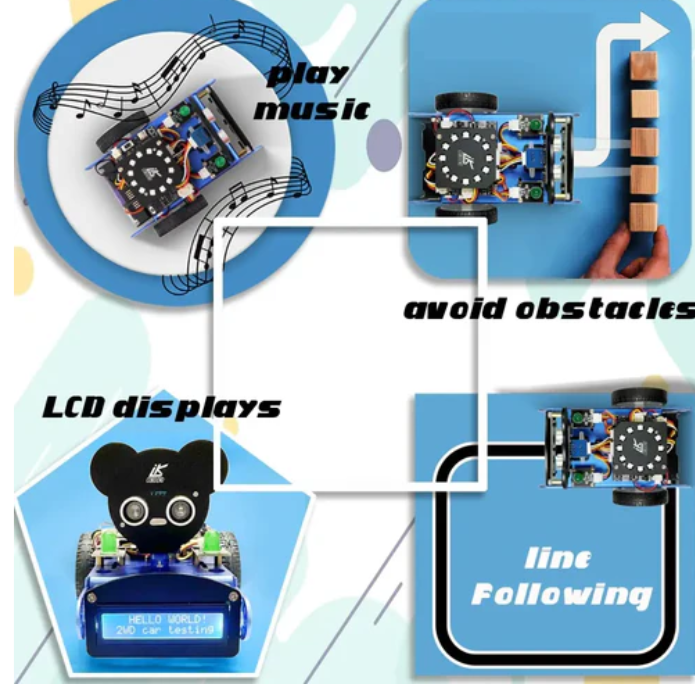 • 사용자는 안드로이드 기기와 호환되는 스마트폰 제어 로봇과 적외선 원격 조종 로봇을 포함한 다양한 기능을 탐색할 수 있다.이 키트는 장애물 회피, 회선 추적, LCD 디스플레이와 조명 쇼 등의 기능을 갖추고 있다.단계별 설명, 회로 원리도 및 소스 코드를 포함한 상세한 자습서를 포함하여 사용자가 조립 및 프로그래밍 프로세스를 완료하도록 안내합니다.
