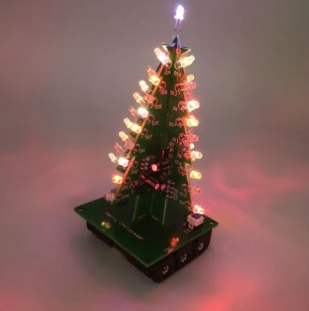Dagu 3D 크리스마스 트리 DIY 전자 LED 키트, 빨간색/녹색/노란색 점멸 회로 포함