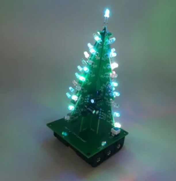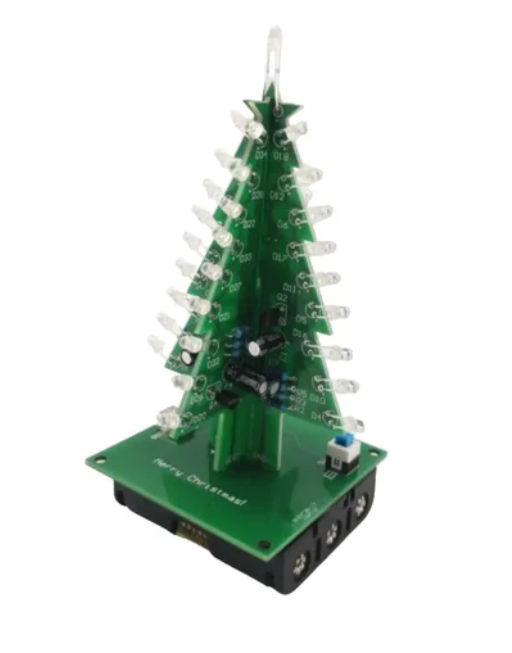 Dagu 3D 크리스마스 트리 DIY 전자 LED 키트 빨간색/녹색/노란색(깜박이 회로 포함)은 깜박이는 LED 조명이 있는 3D 크리스마스 트리를 만들 수 있는 DIY 조립 키트입니다. 이 키트는 3개의 회로 기판으로 구성되어 있으며, 조립하면 아름답고 매력적인 3D 크리스마스 트리가 형성됩니다. 특히 어두운 곳에서 보면 더욱 아름답습니다.