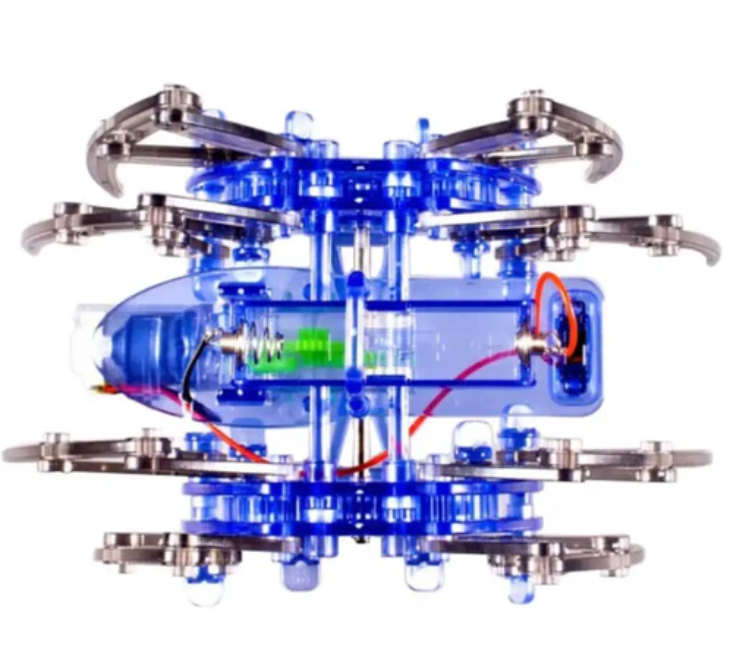 DFRobot 스파이더 로봇 프레임 키트는 8족 거미 모양의 로봇 프레임을 제작하는 데 사용되며, 이 프레임은 단일 모터를 사용하여 전진/후진 운동을 수행합니다.
