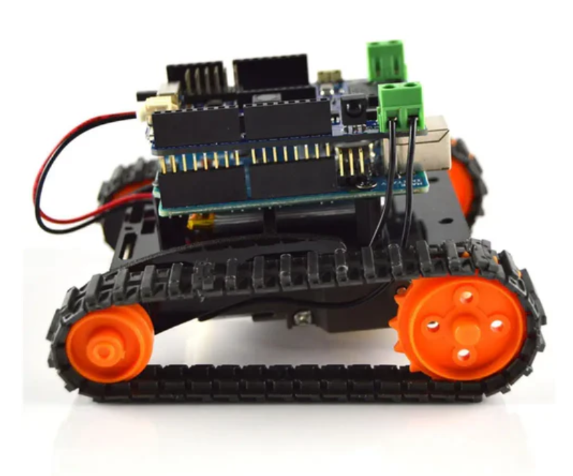 Mini DFRobotShop Rover Kit(Arduino Uno)는 Arduino 기반 프로그래밍과 로봇 이동을 시험하는 데 필요한 기본 도구를 제공하는 작고 저렴한 무한궤도 플랫폼입니다.이 키트에는 Arduino Uno 마이크로컨트롤러 모듈이 포함되어 있습니다.프레임은 내구성 있는 레이저 절단 Lexan 부품으로 제작되었으며, 구동 시스템은 Tamiya 듀얼 모터 변속기 (구성 A에 따라 조립해야 함) 와 Tamiya 무한궤도 및 바퀴 세트로 구성되어 있습니다.