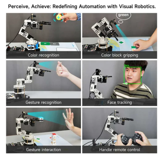 • 여기에는 30MP 카메라 모듈, 다기능 확장 보드, 5*15KG 버스 서보 + 1*6KG 버스 서보가 포함되어 있습니다. 로봇 팔 전체는 아름답고 내구성이 뛰어난 흰색 양극산화 알루미늄으로 만들어졌습니다.