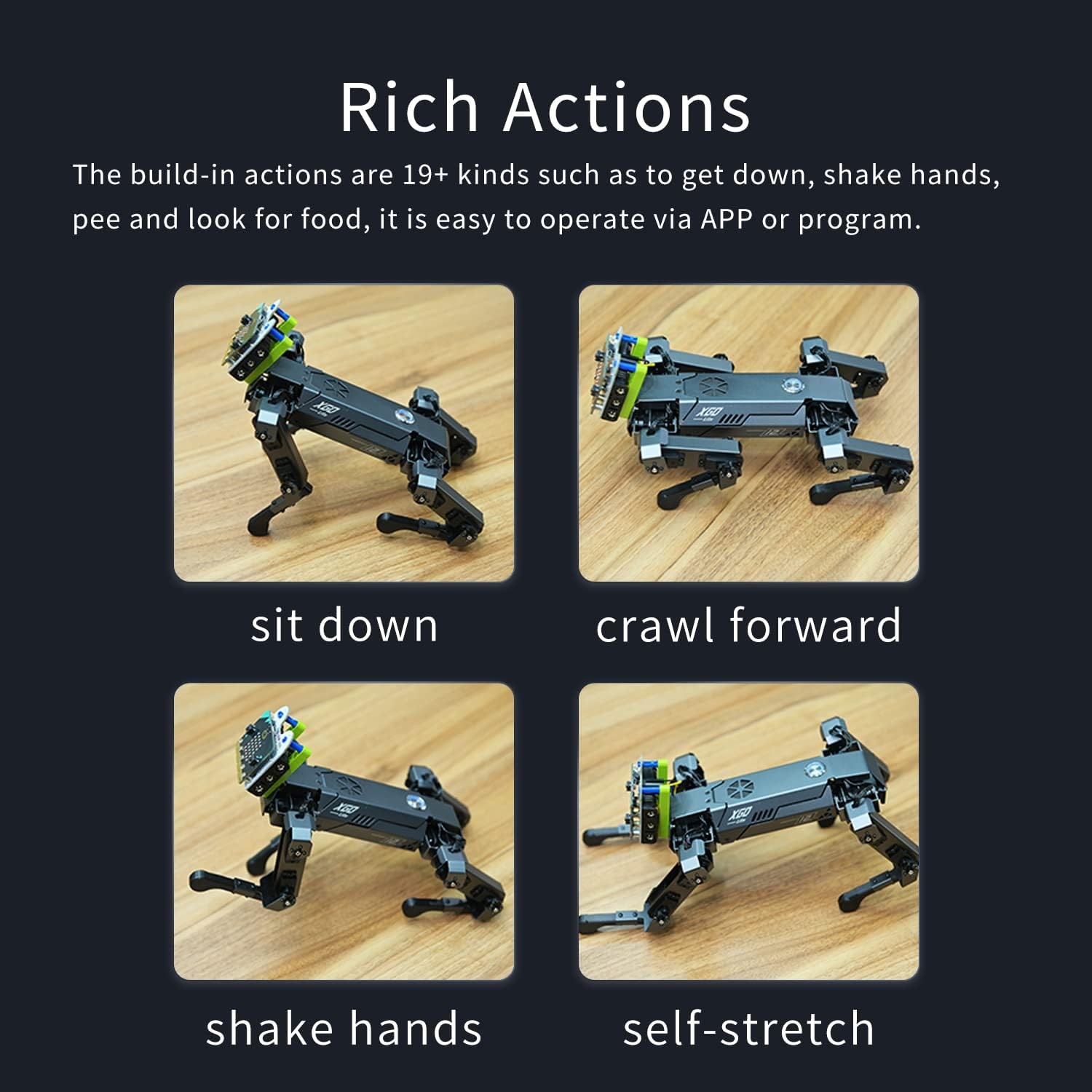 ELECFREAKS microbit 로봇 Xgo 키트, 12개 분리형 조인트 DIY 프로그래밍 가능 풀 메탈 바이오닉 로봇 키트, 오픈 소스 하드웨어용 STEM 교육 프로젝트(Micro:bit 없음)
