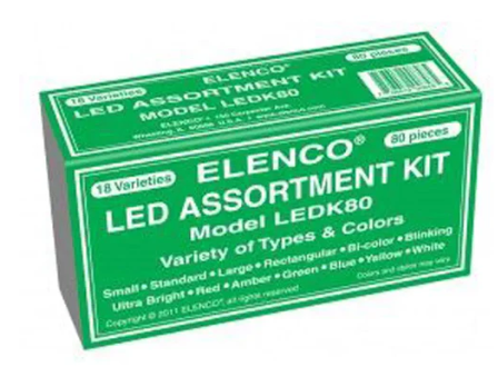 Elenco LED 조합 키트 LEDK80은 다양한 용도에 맞는 광범위한 LED를 제공합니다. 이 포괄적인 세트에는 작은 것부터 큰 것까지 다양한 크기의 LED가 포함되어 있으며, 표준 및 직사각형을 포함한 다양한 모양이 있습니다. 이 조합은 빨간색, 호박색, 녹색, 파란색, 노란색, 흰색을 포함한 다양한 색상으로 제공됩니다. 또한 이 키트는 듀얼 컬러, 플래싱, 초고휘도 옵션을 포함한 특수 LED를 제공합니다. 이러한 각 구성 요소는 모든 프로젝트에 대한 보관 및 선택을 용이하게 하도록 설계된 골판지 상자 안에 주의 깊게 구성되어 있습니다.