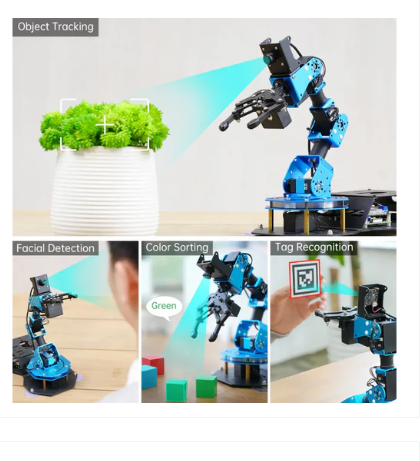 • 3) ArmPi FPV는 고화질 광각 카메라를 장착하고 OpenCV를 이미지 처리 라이브러리로 사용하여 AI 스마트 이미지 인식을 지원한다.ArmPi FPV식별 영역 내의 목표를 탐지할 수 있고, 목표의 위치 좌표와 배치 각도를 계산할 수 있으며, 로봇 팔 역운동학 알고리즘을 결합하여 자유롭게 잡을 수 있다.
