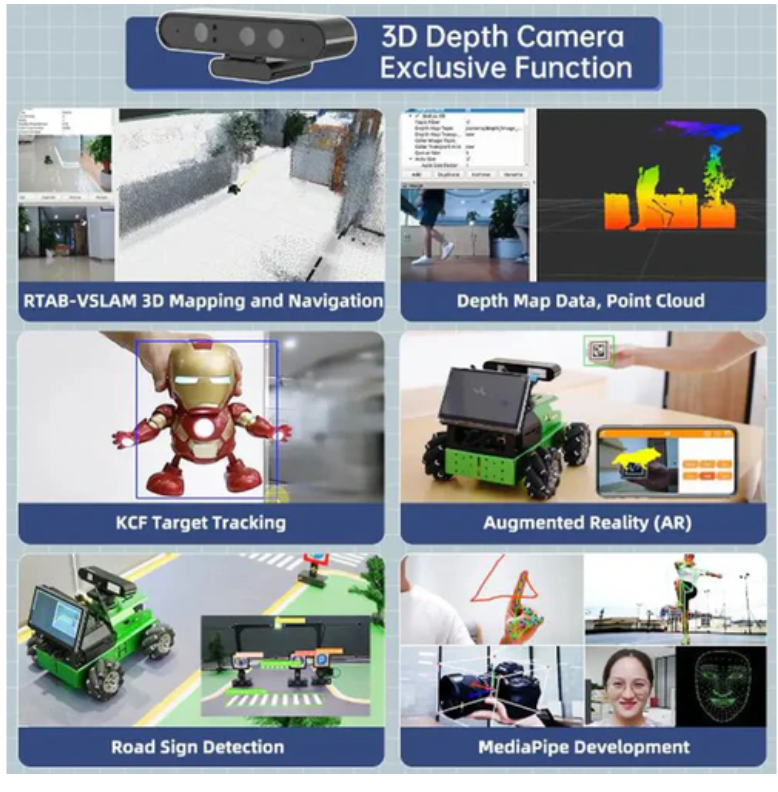 해당 APl을 통해 JetAuto는 카메라의 깊이 그래프, 컬러 이미지 및 포인트 클라우드를 얻을 수 있습니다.
