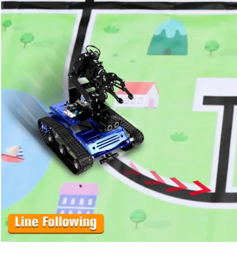 Hiwonder Tankbot 무한궤도로보트차 (STM32프로그래밍을 위한 기계팔이 있는) 는 STM32 마이크로컨트롤러로 구동되는 지능운반로보트이다.6개의 자유도가 있는 로봇 팔을 갖추고 있으며 스마트 직렬 버스 서보를 채택하고 있다.Tankbot은 응용 프로그램, 핸들 또는 체감 장갑을 사용하여 제어할 수 있습니다