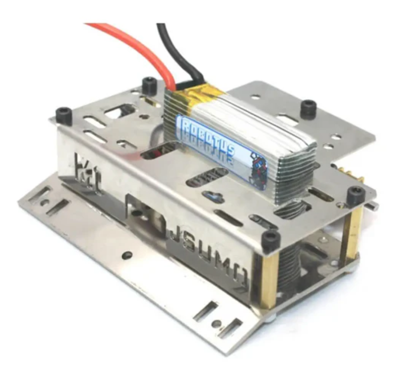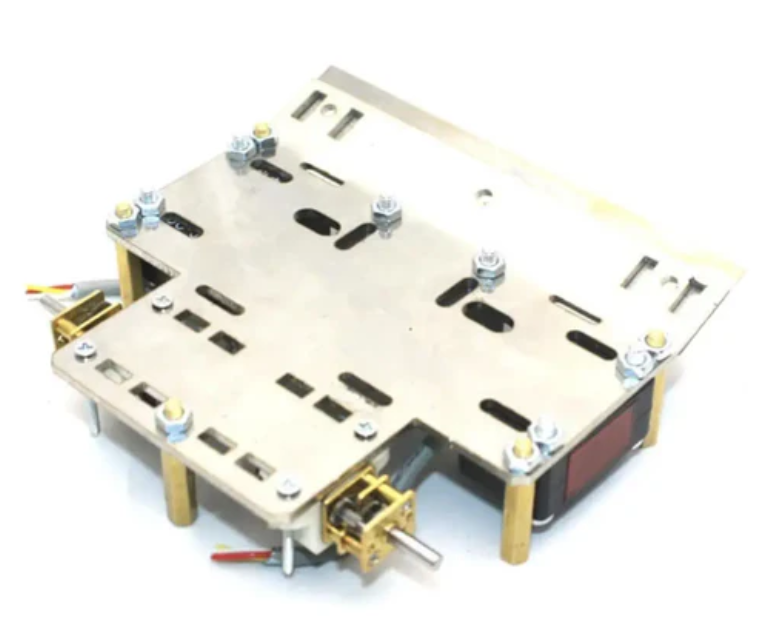 JSumo M1 미니 스모 로봇 섀시 (전자 장치/모터 없음) 는 실용적인 설계를 사용합니다.견고한 구조로 로봇을 보호할 수 있습니다.바닥판은 2밀리미터의 스테인리스강으로 만들어져 20도 구부려서 칼날을 설치할 수 있다.상판은 센서를 고정하고 로봇 컨트롤러 판을 설치하기에 매우 적합하다.