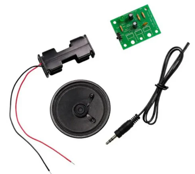 • 이 키트에는 사전 설치된 잭 케이블, 8Ω 66mm 스피커, 2.5~5.5V(최대 6V)에서 작동할 수 있는 AA 배터리 팩이 포함되어 있습니다. 전체 부품 목록은 아래 "상자 내용" 섹션을 참조하세요.