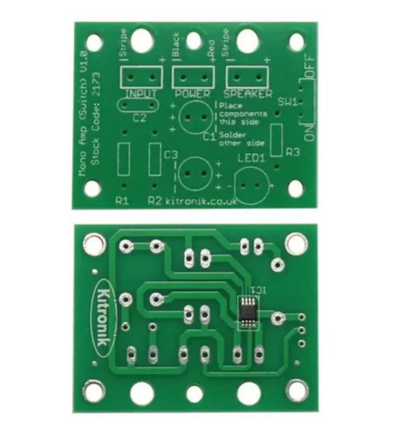 • 전원 스위치와 상태 LED가 있는 Kitronik 모노 앰프 키트