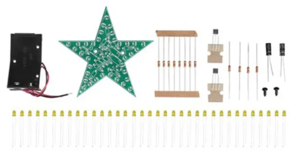 노란색 깜박이는 LED 별 납땜 키트에는 노란색 LED 35개가 들어 있습니다. 9V 배터리로 구동되므로 사용이 안전하고 다양한 키트의 효과를 높여줍니다. 자동차(12V)에서도 작동할 수 있습니다. 깜박거리게 할지 계속 켜놓을지 선택할 수 있습니다.