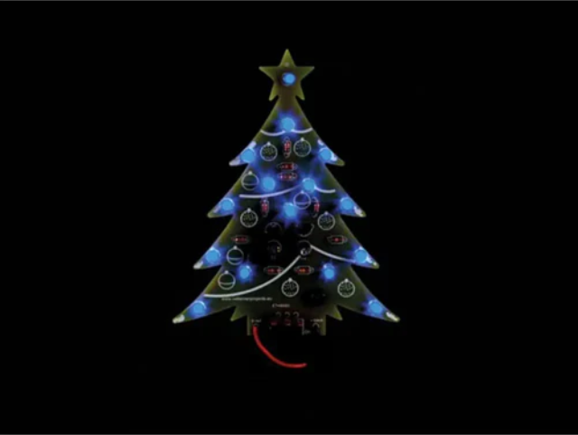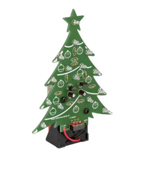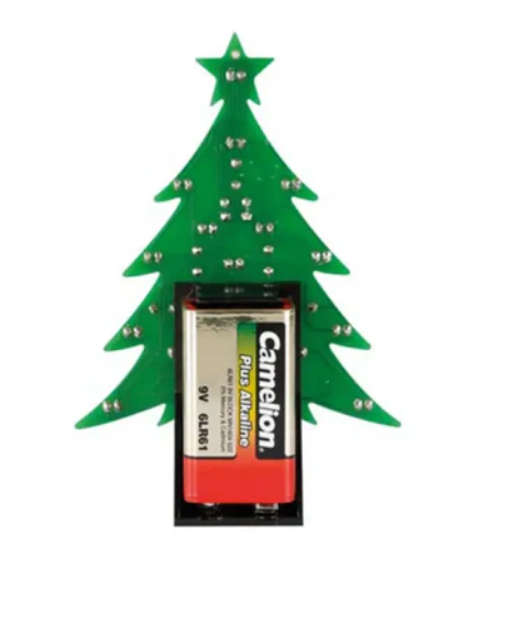 파란색 LED 크리스마스 트리 납땜 키트에는 밝은 파란색 3mm LED 15개가 포함되어 있습니다. 여기에는 스위치가 포함됩니다. 초저전력 설계로 9V 배터리로 구동됩니다.