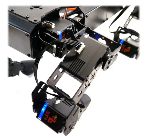 Lynxmotion의 스마트 서보 모터(일반적으로 소형 데스크톱 4족보행자나 대형 4족보행자용 BLDC 모터에 사용되는 9g RC 서보와 다름)와 결합하면 개발자는 서보 모터를 효과적으로 제어하고 피드백을 받을 수 있습니다. 각 서보 모터에 대해 가능한 구성으로는 각도 범위, 중심 위치, 방향, 속도, LED 색상, 작동 모드(직렬 대 RC) 등이 있습니다. 각 서보 모터에 대한 피드백(직렬 모드)에는 절대 각도 위치, 전압, 전류, 속도, 온도, 서보 모터 상태가 포함되지만 이에 국한되지는 않습니다. 서보 모터는 "사람이 읽을 수 있는" 통신 프로토콜을 사용하므로 사용 및 이해가 매우 쉽습니다. 서보 모터에는 Arduino, Python, ROS 라이브러리를 사용할 수 있습니다.