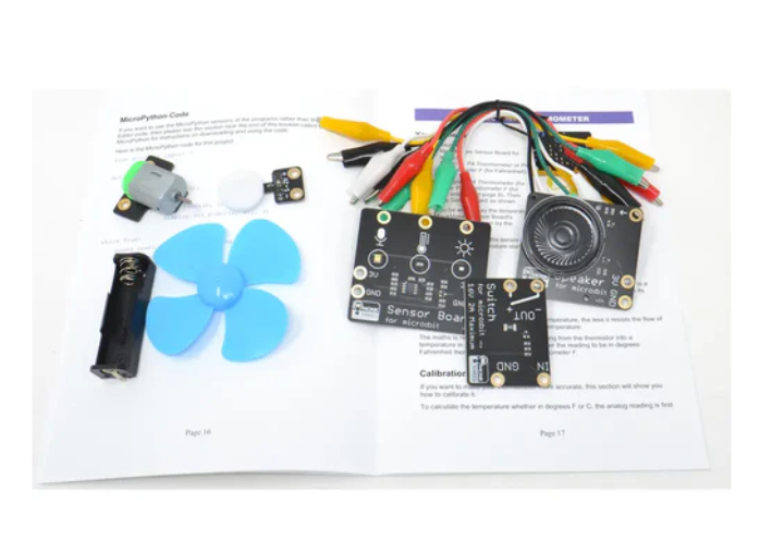• 이 키트에는 필요한 모든 부품과 악어 클립이 포함되어 있어 납땜이 필요 없고 조립이 쉽습니다. 이 키트는 10세 이상 어린이에게 적합하지만, 최적의 학습과 안전을 위해 성인의 감독을 받는 것이 좋습니다. 또한, micro:bit v2와 함께 사용하도록 특별히 제작된 micro:bit 전자 회로 스타터 키트 2라는 대체 키트도 있습니다. 이 키트는 micro:bit v2 플랫폼과 일관된 향상된 호환성과 기능을 제공하며, 결국 현재 micro:bit 전자 스타터 키트를 대체하게 될 것입니다.