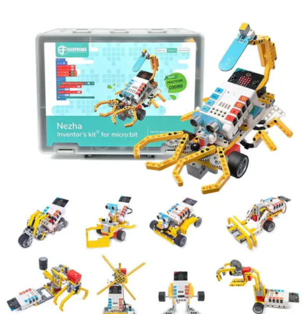 NEZHA Inventor's Kit V2 for micro:bit w/ micro:bit은 BBC micro:bit 기술과 Planet X 센서가 융합된 ELECFREAKS가 설계한 종합 교육 키트이다.이 키트에는 LED 램프, 전위기, 토양 습도 센서, 초음파 센서, 충돌 센서, 순찰 센서 등 다양한 센서와 모듈이 장착되어 있다.