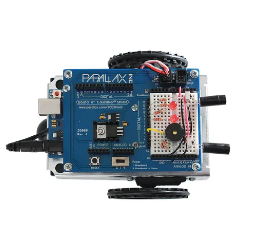 Parallax Boe-Bot Robotics Shield Kit for Arduino는 단계별 수업이 포함된 다기능 제품군입니다.교육판 보호막은 Arduino에 삽입하여 인기있는 Boe-Bot 로봇 섀시에 설치할 수 있습니다.RobotC는 이 키트와 함께 사용할 수 있습니다.Arduino 프로그래밍, 로봇 기술 및 회로 구축에 대한 무료 단계별 네트워크 자습서를 따르십시오.