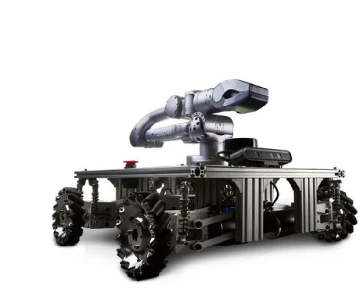 Pickerbot Pro에는 내장형 Z1 Pro Unitree 암, ROS 컨트롤러,LiDAR、심층 카메라, STM32 모터/전원/IMU 및 전방향 맥넘 휠이 장착된 금속 섀시