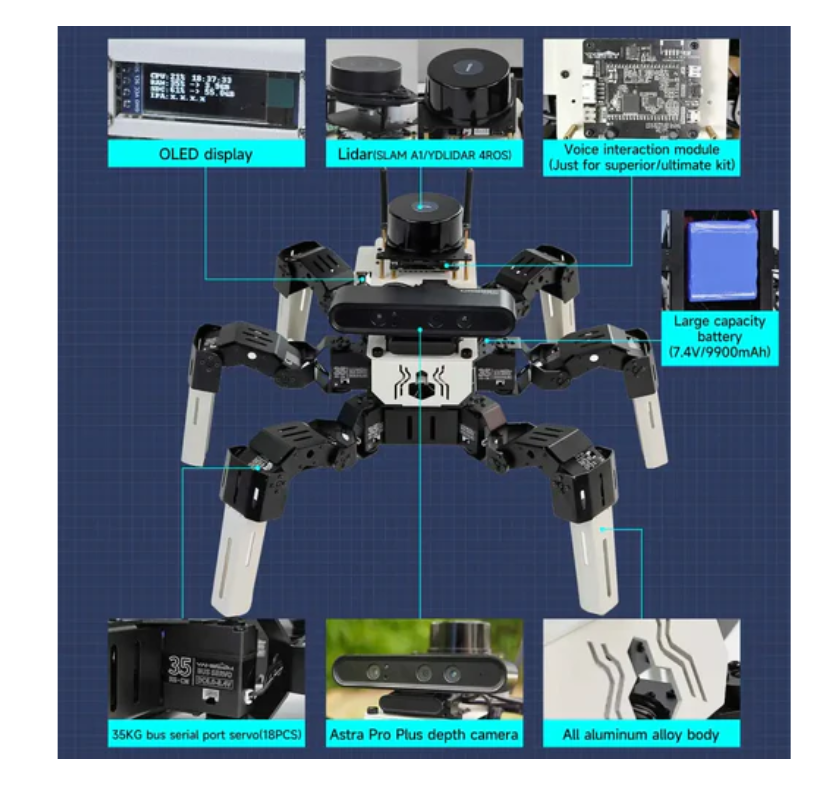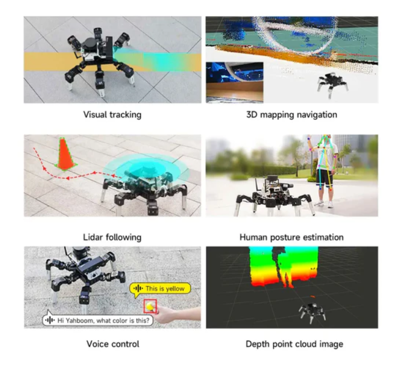 Muto RS는 Jetson NANO 및 Raspberry Pi와 호환되는 ROS2 운영 체제를 기반으로 개발 및 설계된 데스크탑 수준의 생체 모방 6족 로봇입니다.전체 동체는 알루미늄 재질로 18PCS 35KG 직렬 버스 조타기, 심도 카메라, 레이저 레이더, 음성 모듈을 포함하고 있다.Python3 프로그래밍과 고정밀 알고리즘 내장을 통해 Muto RS는 AI 시각 인터렉션, 3D 건도 네비게이션, 음성 인터렉션, 딥 러닝, Rviz 시뮬레이션을 쉽게 구현할 수 있다.멀티 컴퓨터 통신 기술을 기반으로 Muto가 멀티 컴퓨터 동기화 제어, 멀티 컴퓨터 탐색을 완료할 수도 있습니다.사용자는 APP, 무선 손잡이, 컴퓨터 웹 페이지 등을 통해 이를 제어할 수 있다.Muto는 다족 생체 모방 로봇 움직임을 배우는 알고리즘에 적합할 뿐만 아니라 ROS 개발자를위한 좋은 플랫폼입니다.