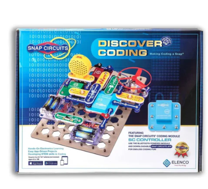 Snap Circuits Discover Coding은 간단한 그래픽 코딩을 통해 코딩에 대한 좋은 소개를 제공합니다. 더욱 고급 코더는 BLOCKLY 코딩으로 업그레이드할 수 있습니다.
