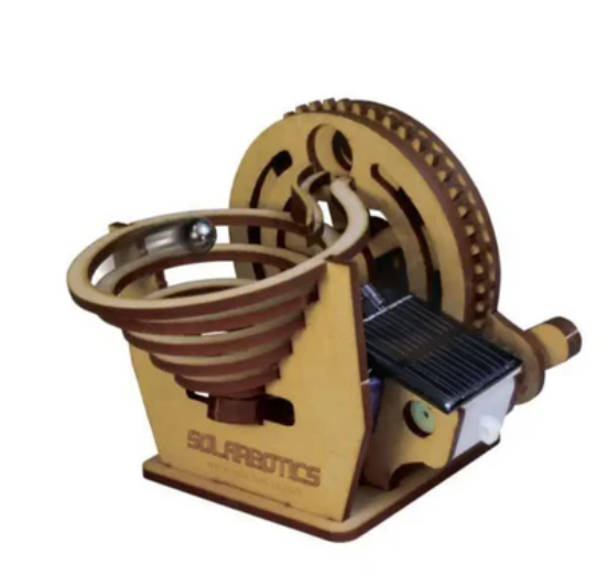 Solarbotics 태양열 비즈 기계의 Solarengine 회로는 태양 전지에서 나오는 빛을 저장하고 가끔 펄스 형태로 방출하여 기계 장치를 구동합니다.햇빛 아래에서는 모터가 몇 초마다 펄스를 내고 반분마다 공을 던진다.실내 조명에서는 모터 펄스가 몇 분 간격으로 감소합니다 (참고 기다리십시오).그러나 항상 핸들을 사용하여 수동으로 비즈 휠을 밀어 넣을 수 있습니다.이 키트에는 기본 용접 도구 (인두, 용접 재료), 십자형 드라이버 # 1 및 소량의 흰 접착제가 필요합니다.