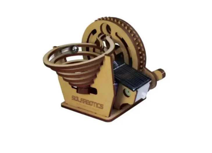 Solarbotics Solar Marble Machine Kit(무용접 버전)는 Solarengine 기술로 지원되어 실내 조명이 부족할 때에도 계속 움직일 수 있습니다.