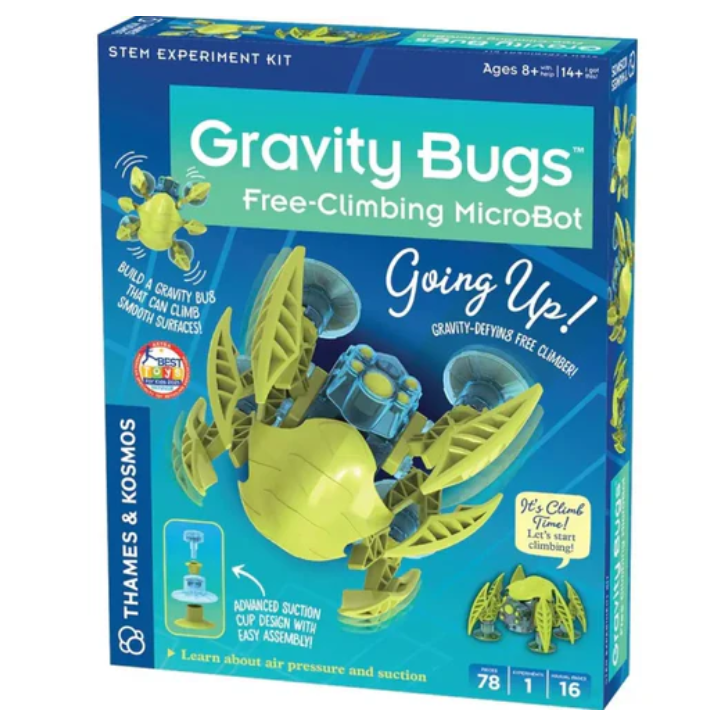 로봇을 조립하여 기어와 모터, 배터리, 스위치가 있는 회로를 포함한 내부 메커니즘을 이해한다.그런 다음 Gravity Bug가 어떤 종류의 표면에 가장 적합한지 실험해보십시오.흡판의 작업 원리와 이 로봇의 상승 방식을 이해하다.이 손짓 키트는 공학과 물리학을 생활로 끌어들여 작업 중 기압의 위력을 보여준다.8 패널 전체 색상 매뉴얼은 단계별 도해 설명을 통해 모델 구축을 안내합니다.