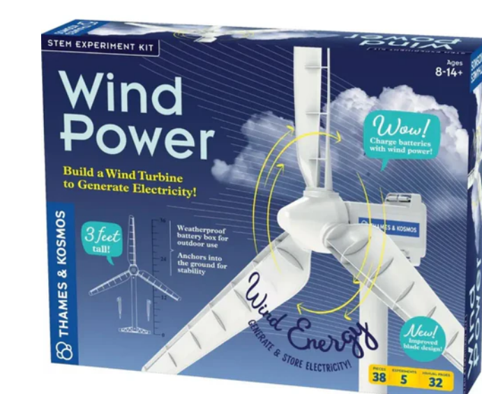 전체 컬러로 된 32 페이지 분량의 설명서는 다양한 종류의 풍력 터빈과 풍차,이 기술의 역사, 집과 전기 자동차를 작동시키기 위해 풍력을 사용하는 방법을 탐구하고 있다.
