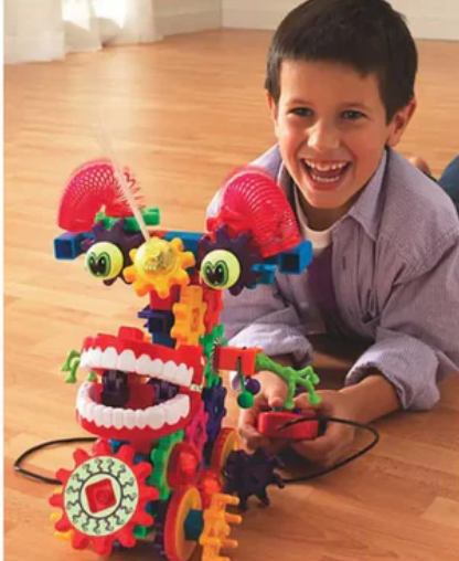 기어!기어!기어!전동 Wacky Wigglers 건축 세트에는 컬러 기어, 스프링, 치아 교합, 플래시, 수염, 야광 안구를 포함한 130개의 부품이 포함되어 있어 끝없는 창의적인 조합을 할 수 있다.