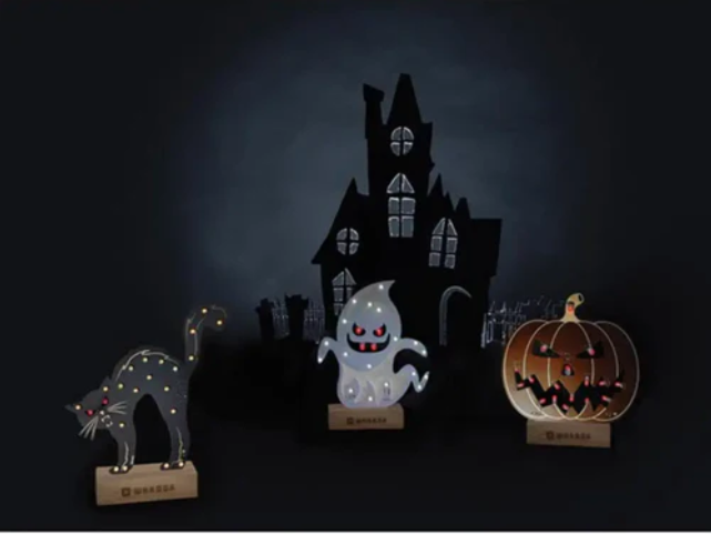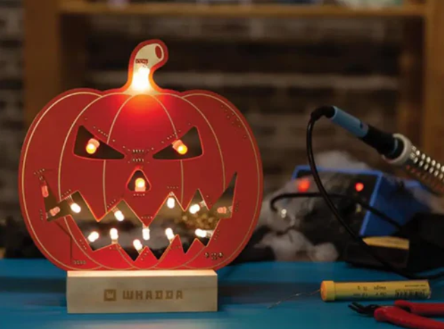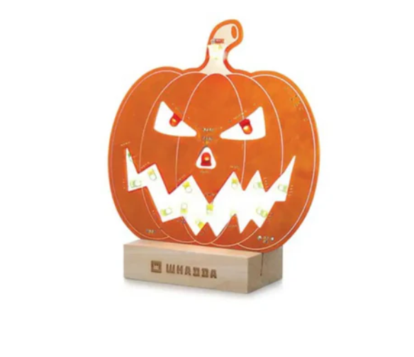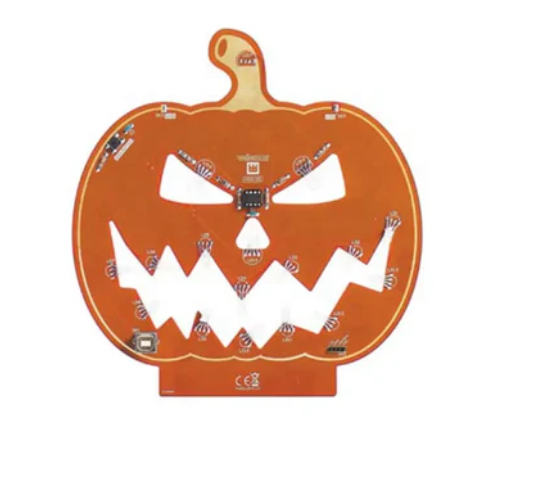 납땜이 완료되면 LED가 5가지 다른 조명 효과를 내는데, 이는 온보드 푸시 버튼 스위치를 통해 선택할 수 있습니다. 애니메이션은 보드의 ATtiny 칩에 미리 프로그래밍되어 있으므로, 포함된 어댑터로 전원을 공급하면 키트가 작동합니다. 지나가는 사람들을 놀라게 하려면 벽난로나 창틀에 호박을 놓으세요.