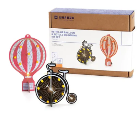 Whadda 빈티지 풍선과 자전거 납땜 키트(WSL22SET1)를 사용하면 복고풍 디자인을 통해 시간을 거슬러 올라가 전자공학에 대해 배울 수 있습니다. 이 납땜 키트는 초보자와 고급 수집가 모두에게 적합하며, 키트는 두 가지 고유한 디자인으로 제공됩니다.