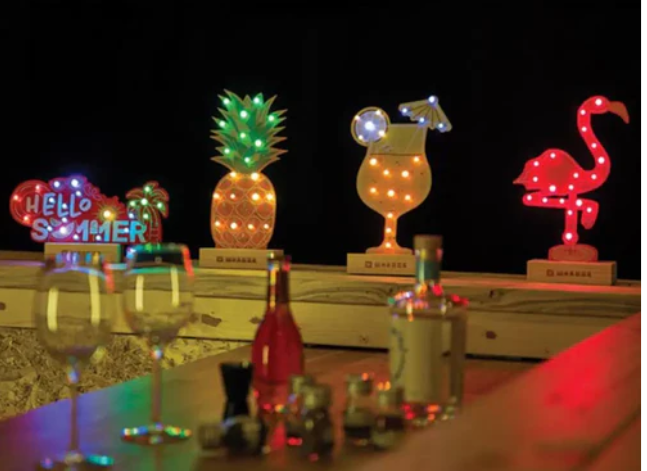 Whadda - Hello Summer XL 납땜 키트(WSXL106)는 특수 확산 효과가 있는 장식용 RGB LED를 탑재하고 있습니다.