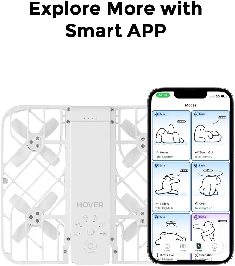 카메라가 장착된 X1 드론, 125g 접이식 자체 비행 드론, HDR 비디오 캡처가 가능한 미니 드론, 팜 이륙, 스마트 비행 경로, 핸즈프리 제어 화이트(콤보)