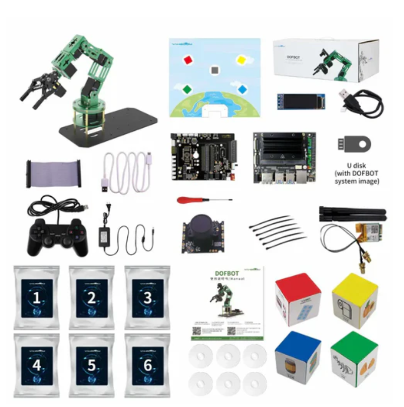 Yahboom 6 자유도 AI 시각 로봇 팔, ROS 및 Python 프로그래밍, Jetson NANO 4GB (Jetson NANO SUB 보드 포함) 용 영어 매뉴얼은 AI 초보자, 프로그래밍 애호가 및 Jetson nano 팬의 완벽한 파트너입니다.Jetson NANO 4GB를 기반으로 설계되었으며 6 개의 고품질 서버, 1 개의 HD 카메라 및 1 개의 다기능 확장판을 포함합니다.전체 몸체는 녹색 산화 알루미늄 합금으로 만들어져 아름답고 내구성이 강하다.ROS 로봇 시스템을 통해 직렬 버스 서보의 모션 제어를 간소화했다.오픈 소스 CV를 이미지 처리 라이브러리로 사용하고 Python3 프로그래밍 언어를 사용하여 색상 추적, 색상 상호 작용, 스팸 분류, 제스처 인식, 얼굴 추적 등과 같은 일련의 AI 비주얼 게임을 만듭니다.Android/iOS 모바일 앱, PC 및 게임 핸들을 통해 제어할 수 있습니다.또한 자습서를 참조하십시오.