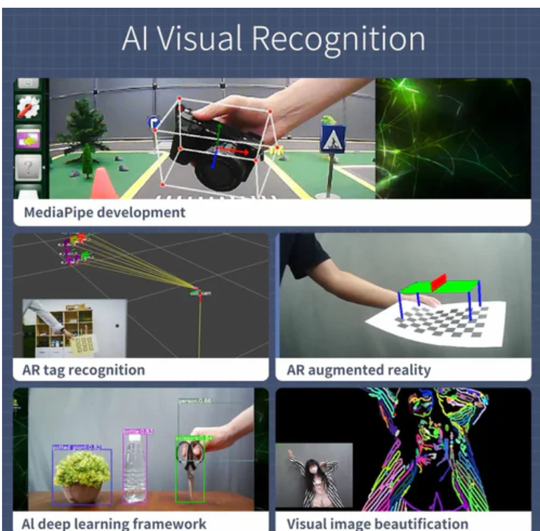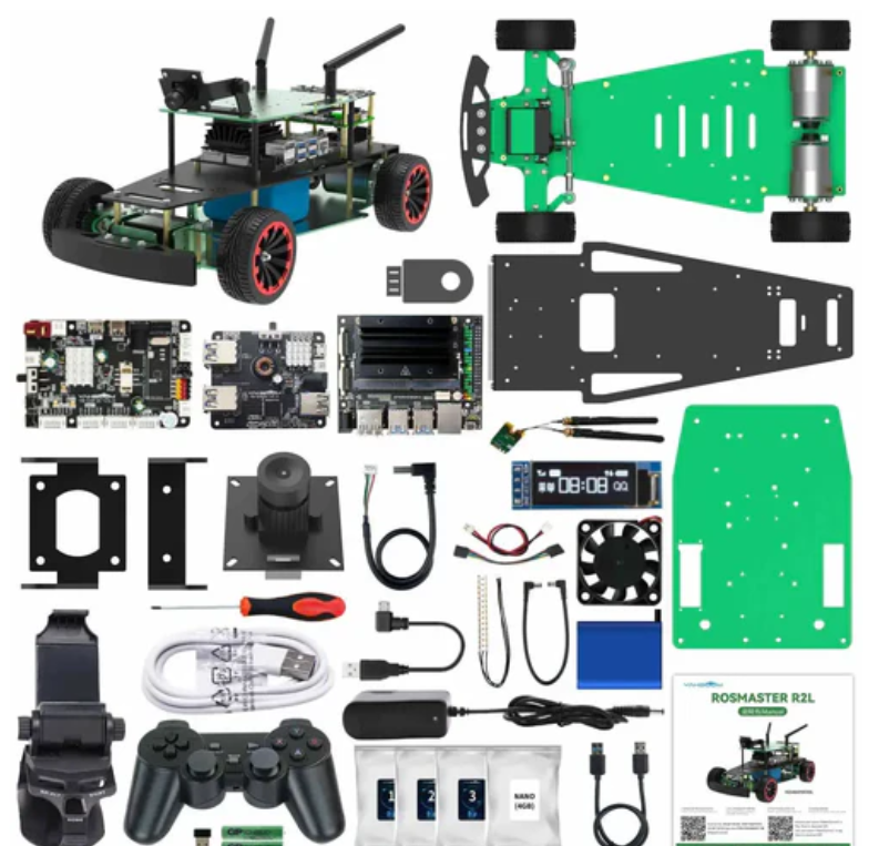 ♦R2는 R2L 로봇과 같은 점: 아크만 조향 구조, ROS 로봇 운영 체제, OpenCV 시각 인식, APP 원격 제어, FPV 핸들 원격 제어.