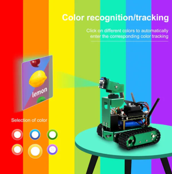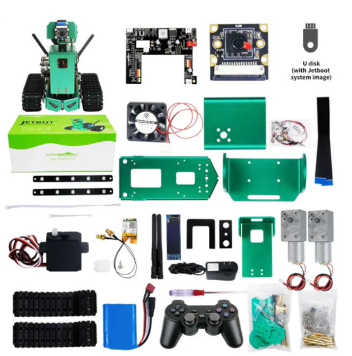 Yahboom Jetbot 표준 버전의 AI 로봇은 고화질 카메라를 갖추고 있으며 Jetson Nano 4GB (Jetson Nano 보드 제외) 용 Jetson Nano 4GB (A02/B01/SUB) 기반의 다기능 AI 스마트 로봇 차량으로 다양한 시각 게임에 빠르게 대응할 수 있다.녹색 알루미늄 합금으로 제작된 이 차는 독특한 기계 구조로 다른 자동차에 비해 외관이 독특하다.3 자유도 리프트 플랫폼과 800만 HD 카메라를 장착해 주변 환경을 실시간으로 확인할 수 있다.또한 자동 장애물 회피, 물체 추적, 색상 인식 / 추적, 데스크탑 가장자리를 감지하여 넘어짐을 방지하는 데 사용할 수 있습니다.또한 다양한 트랙 모델을 훈련하고 Jetbot을 사용하여 자율 주행 기능을 완료 할 수 있습니다.양쪽에는 어두운 환경에서 밝고 다채로운 조명을 제공하는 프로그래밍 가능한 RGB 램프 밴드도 설계됐다.사용자는 응용 프로그램이나 핸들을 통해 원격으로 그것을 제어할 수 있으며, 우리는 사용자에게 많은 참고 자습서를 제공할 것이다.