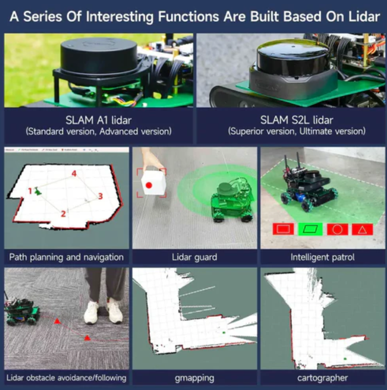 1.하드웨어 구성 우수: 알루미늄 합금 동체, 360 ° 전방향 맥넘 바퀴, 레이저 레이더, 고품질 심도 카메라, 전문 디자인의 확장판, 전문 ROS 로봇, 더 많은 개발을 지원하며, 사용자는 기존의 과정을 바탕으로 2차 개발 학습을 진행할 수 있다.